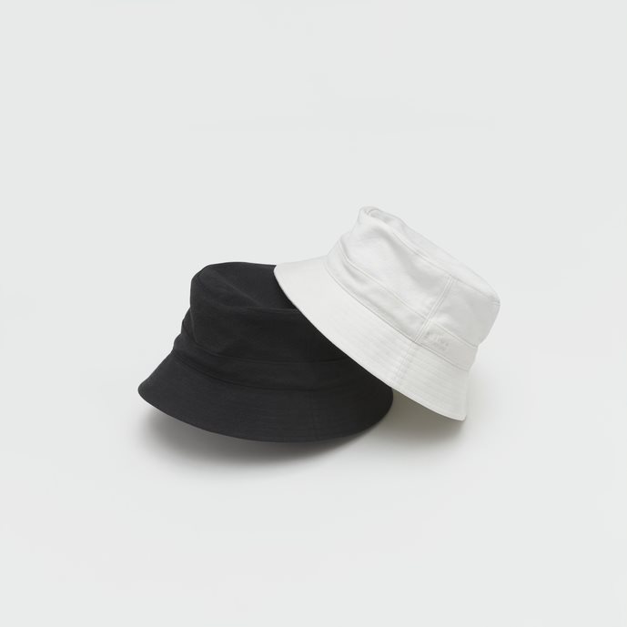 “Except for indigo(インディゴを取り除く)”をテーマに、KIJIMA TAKAYUKI 定番のパターンで制作した6パネルキャップとバケットハット。スーパーブリーチ(ホワイト)と黒染め(ブラック)を施し、リーバイス(R)501(R)のユーズドストックをアップサイクル。